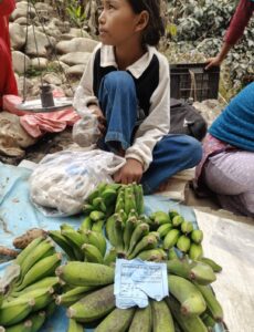 हामी फेरि १ बजे पुग्दा स्थानीय उत्पादन पाइने हाटबजार प्रायः रित्तिसकेको थियो। ग्राहकको चहलपहल थिएन। बिक्री नभएको सामान पोका पारिँदै थियो। केही भने अझै बिक्री हुन्छ कि भनेर पर्खिरहेका देखिन्थे। विमला पनि १ बजेसम्म ग्राहकको पर्खाइमै थिइन्। अन्त्यमा ३० रुपैयाँ दर्जनमा केरा दिन खोज्दा समेत बिक्री भएन। नगरपालिकालाई कर भने बिहानै तिरिएको थियो।