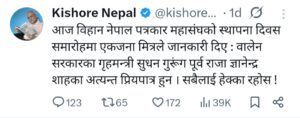 वरिष्ठ पत्रकार किशोर श्रेष्ठले सामाजिक सञ्जाल ट्विटरमा लेख्दै भनेका छन्—“बालेन सरकारका गृहमन्त्री सुधन गुरूंग पूर्व राजा ज्ञानेन्द्र शाहका अत्यन्त प्रिय पात्र हुन्। धेरैलाई चकित पार्दै सुधन गुरूंग गृहमन्त्री बन्न सफल हुनुमा दरबारको प्रभाव नकार्न नसकिने जानकारहरू बताउँछन्।