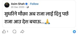 अमित शाहको नेतृत्वमा सरकारले संविधान संशोधनसम्बन्धी बहसपत्र तयार पार्न कार्यदल गठन गरेको छ। फिल्म बनाउने व्यक्तिलाई संविधान फेर्ने जिम्मा दिएको भन्दै अहिले व्यापक आलोचना र बहस भइरहेको छ। अमित शाह राजतन्त्र पुनर्स्थापनाका अभियन्ता हुन्। उनले “सुधारिने मौका अब राजालाई दिनुपर्छ—राजा आउ, देश बचाउ” भन्दै सामाजिक सञ्जालमा लेखेका कुरा अहिले यत्रतत्र फैलिएको छ।